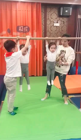 从照片中可以看到,妈妈杨云只是在一旁用手护着,哥哥杨阳洋抓着妹妹的手,俩萌娃几乎是靠自己的力量完成动作。果然一家人的运动基因强大,这么小的萌娃手臂力量就如今不错。